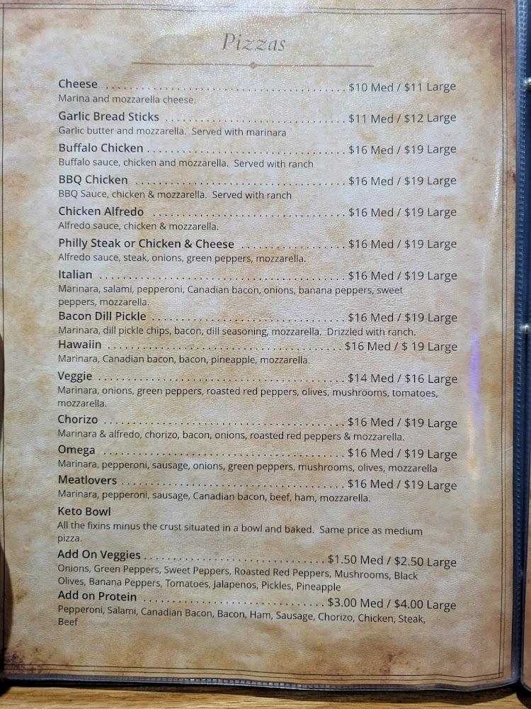 Omega Bar & Grill offers a tempting menu with something for everyone. Dishes vary from classic pizza, hot wings, and subs to hearty burgers and refreshing salads. Well-known items include Buffalo chicken and meat lover's pizza. Unique creations, like Omega Rolls, provide an adventurous twist. Appetizers like jalapeno poppers and chicken tenders perfectly complement drinks. As a family-friendly place, kids enjoy their own menu options. The average price remains budget-friendly at about $9.30. Daily food specials also attract regulars. Beverages include ten beers on tap and an extensive selection of cocktails. In summary, the menu caters to diverse tastes, making Omega a go-to for satisfying meals.